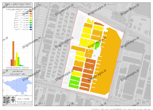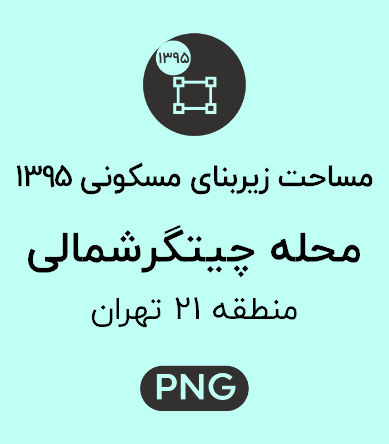 نقشه مقایسه مساحت زیربنای مسکونی بلوکهای آماری محله چیتگر شمالی با فرمت PNG با کیفیت تصویر 300 dpi براساس داده های مرکز آمار ایران در سال 1395 تهیه شده است. مبنای محاسبه مقیاس در محصول ارائه شده ابعاد کاغذ چاپی و سیستم مختصات تصویر UTM (zone 39) میباشد.