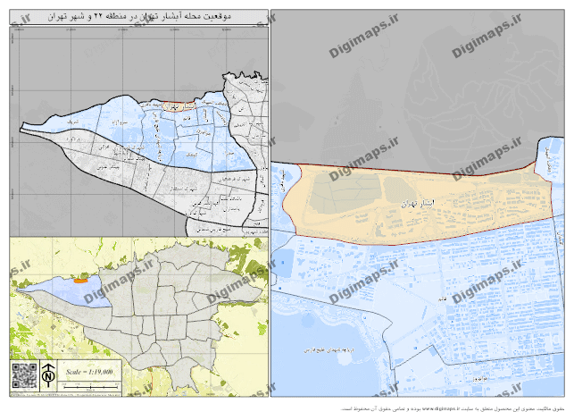این محصول شامل فایل دانلودی موقعیت محله آبشار تهران با فرمت PNG می باشد. این نقشه موقعیت مکانی محله در منطقه و شهر را ارائه می کند.