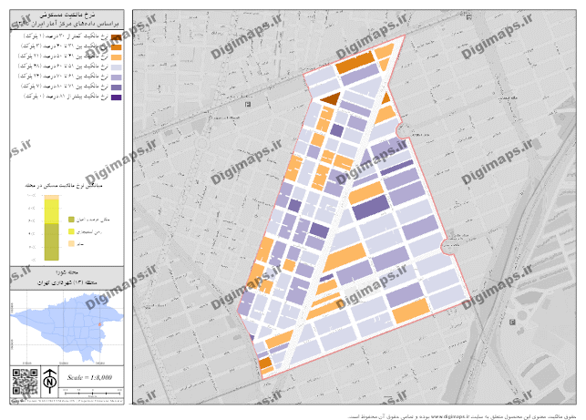 نقشه نرخ مالکیت مسکونی محله شورا با فرمت PNG با کیفیت تصویر 300 dpi براساس داده های مرکز آمار ایران در سال 1395 تهیه شده است. مبنای محاسبه مقیاس در محصول ارائه شده ابعاد کاغذ چاپی و سیستم مختصات تصویر UTM (zone 39) میباشد.