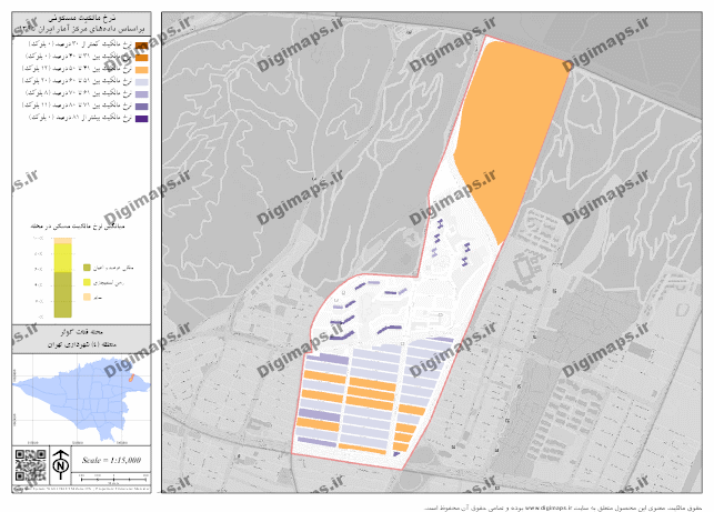 نقشه نرخ مالکیت مسکونی محله قنات کوثر با فرمت PNG با کیفیت تصویر 300 dpi براساس داده های مرکز آمار ایران در سال 1395 تهیه شده است. مبنای محاسبه مقیاس در محصول ارائه شده ابعاد کاغذ چاپی و سیستم مختصات تصویر UTM (zone 39) میباشد.
