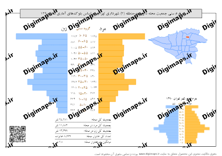نمودار تحلیلی هرم سنی محله داوودیه با فرمت PNG با کیفیت تصویر 300 dpi براساس داده های مرکز آمار ایران در سال 1390 تهیه شده است. مبنای محاسبه مقیاس در محصول ارائه شده ابعاد کاغذ چاپی و سیستم مختصات تصویر UTM (zone 39) میباشد.