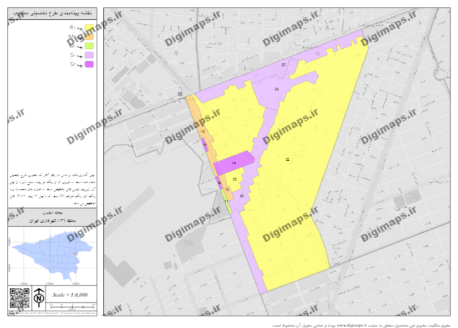 نقشه طرح تفصیلی مصوب محله امامت با فرمت PNG با کیفیت تصویر 300 dpi براساس طرح تفصیلی مصوب شهر تهران تهیه شده است. مبنای محاسبه مقیاس در محصول ارائه شده ابعاد کاغذ چاپی و سیستم مختصات تصویر UTM (zone 39) میباشد.