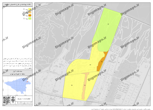 نقشه طرح تفصیلی مصوب محله قنات کوثر با فرمت PNG با کیفیت تصویر 300 dpi براساس طرح تفصیلی مصوب شهر تهران تهیه شده است. مبنای محاسبه مقیاس در محصول ارائه شده ابعاد کاغذ چاپی و سیستم مختصات تصویر UTM (zone 39) میباشد.